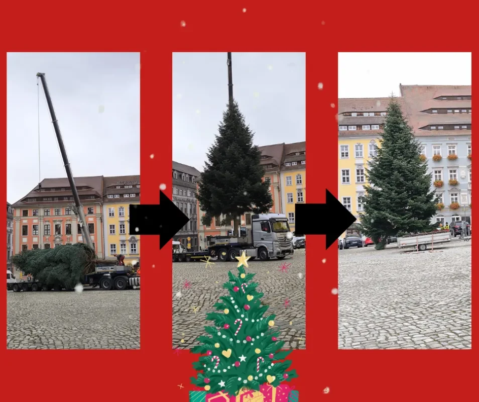 Auf dem Wenzelmarkt in Bautzen erstrahlt die Altstadt im warmen Lichterglanz.