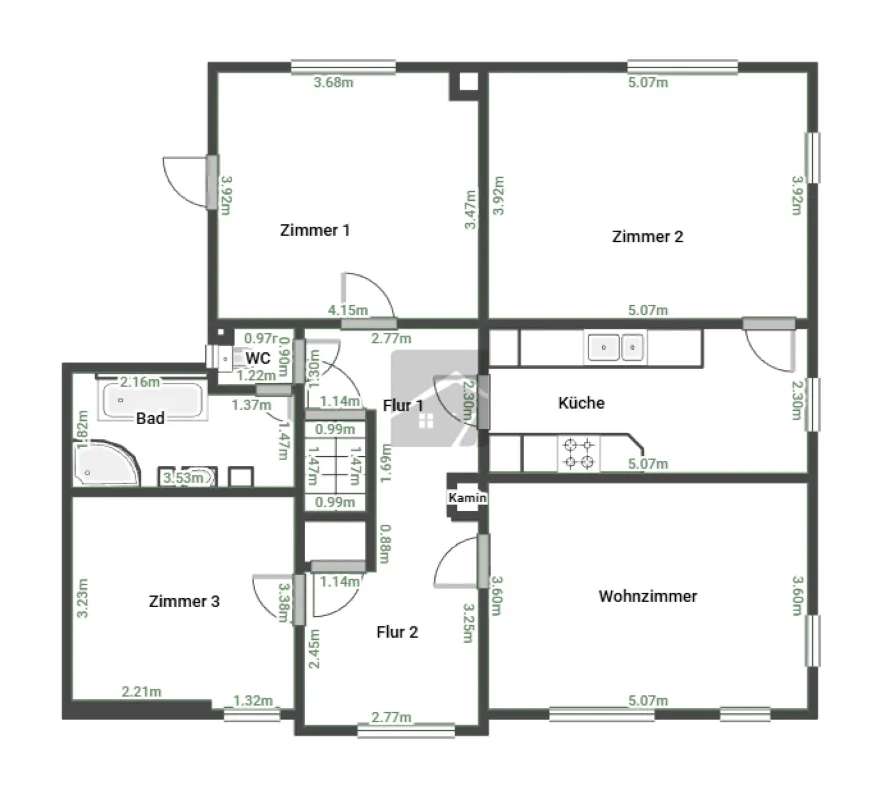 Schon beim Betreten Ihres neuen Zuhauses empfängt Sie ein großzügiger Flur, von dem aus sich alle Räume angenehm erschließen. Zur rechten Seite liegt eine ehemalige, noch zu modernisierende Wohnstube, die fließend in die angrenzende Küche übergeht. Dahinter befindet sich ein weiterer Raum, den Sie ganz nach Ihren Bedürfnissen als Schlaf-, Gäste- oder Arbeitszimmer nutzen können. Alle Räume sind beheizt und von der Küche aus gelangen Sie bequem zurück in den Hausflur.