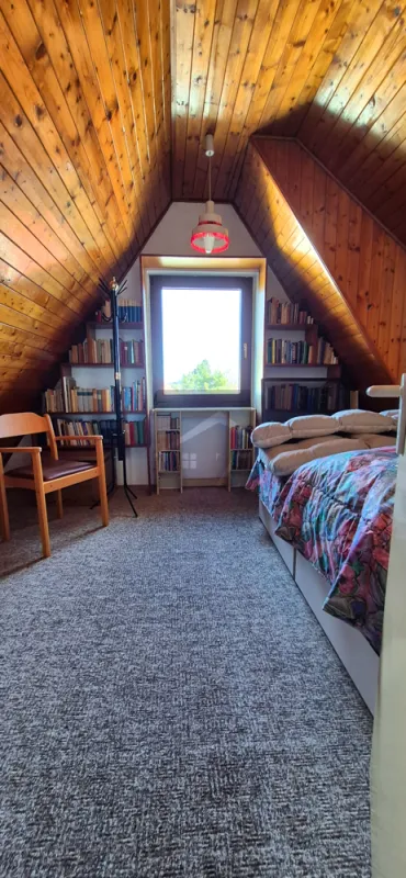 Von hier führt Sie eine Tür in das ausgebaute Dachgeschoss mit zwei zusätzlichen Räumen. Diese wurden bisher als Schlaf- bzw. Gästezimmer genutzt. Bei Bedarf kann hier durch Sie eine Beheizung ergänzt werden. Ein besonderes Highlight ist das große Galeriefenster mit teilweisem Blick Richtung Bautzen und in den Garten.