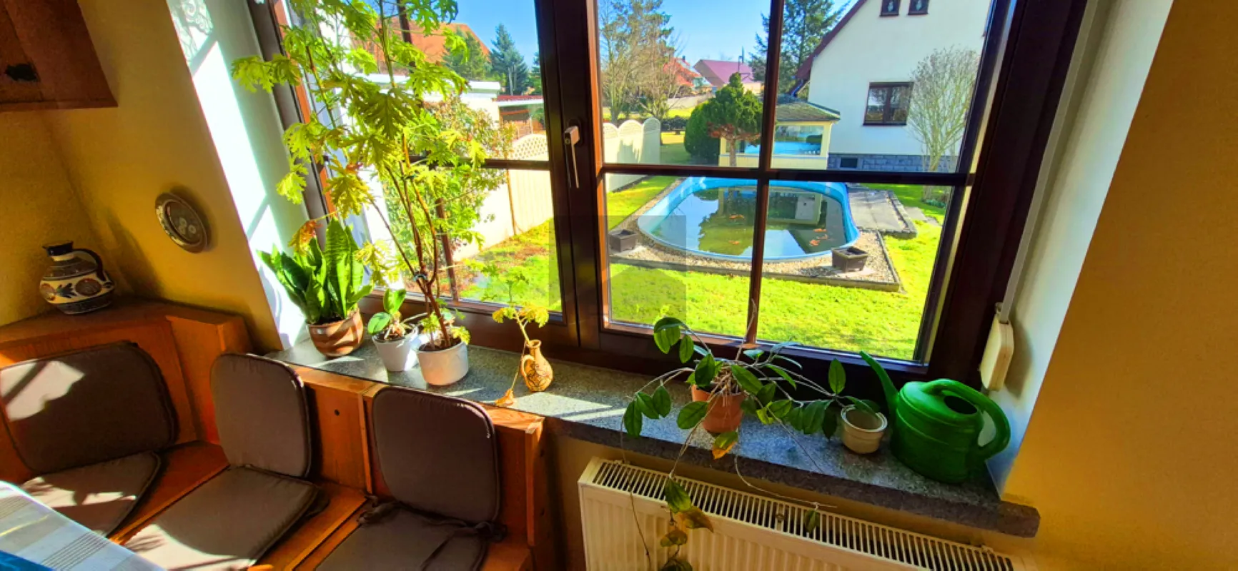 Ihr Anwesen überzeugt durch seine naturnahe Umgebung, geschützte Gartenbereiche mit viel Grün sowie einen schönen Ausblick über Felder und Wälder in Richtung Bautzen. Ein besonderes Detail ist der derzeit gemeinschaftlich genutzte Pool an der Grundstücksgrenze – hier können die zukünftigen Eigentümer individuell entscheiden, ob die bestehende Nutzung mit den Nachbarn fortgeführt oder eine eigene Lösung umgesetzt werden darf.