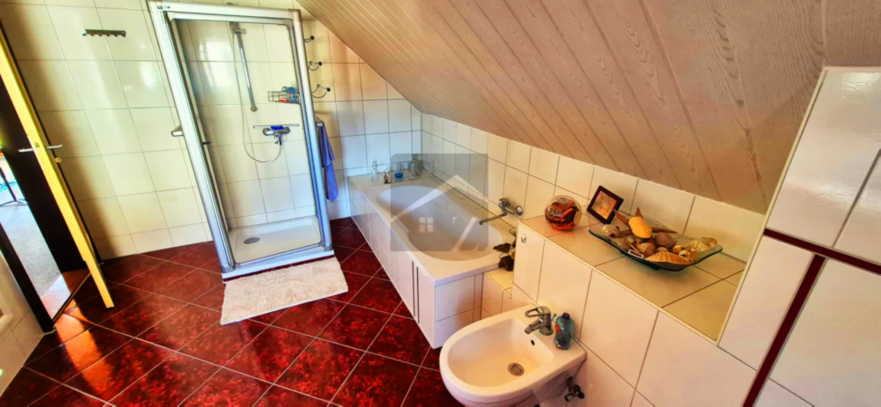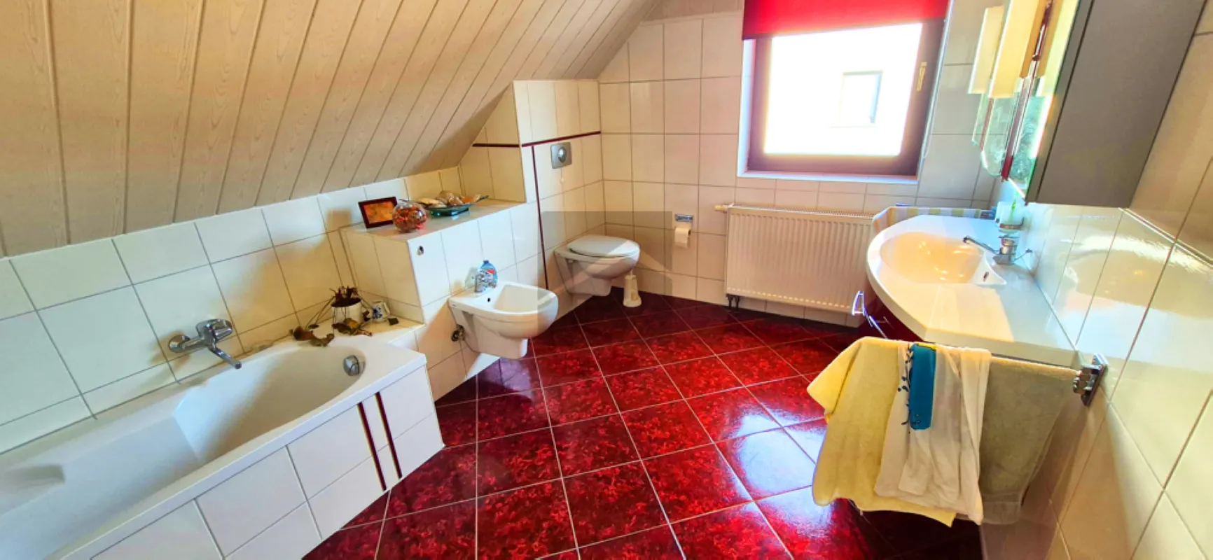 modernisiertes Hauptbad mit Dusche, Wanne, Bidet, WC