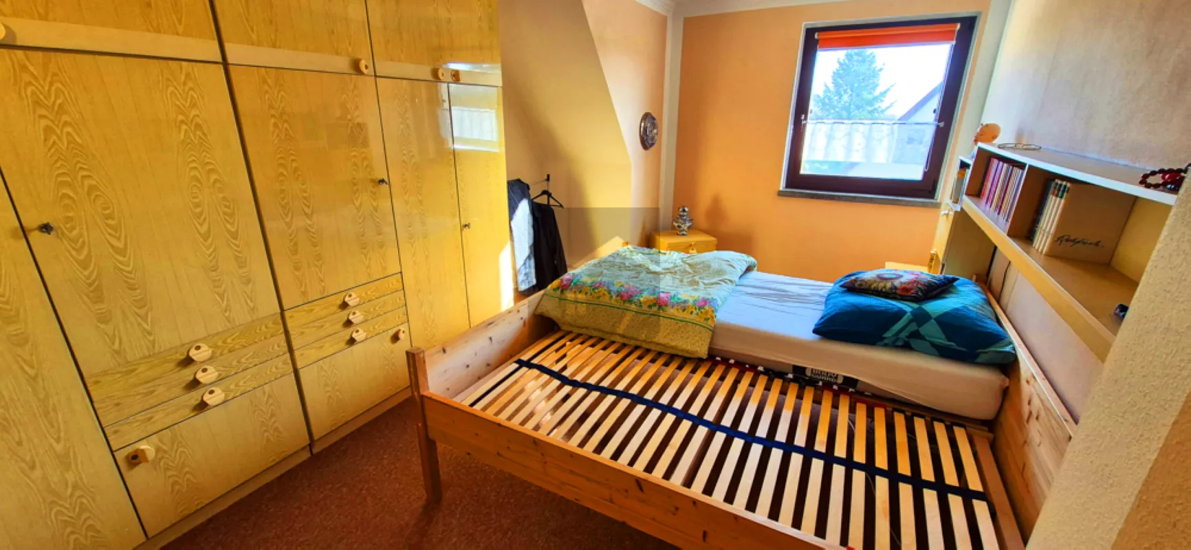 Von hier führt Sie eine Tür in das ausgebaute Dachgeschoss mit zwei zusätzlichen Räumen. Diese wurden bisher als Schlaf- bzw. Gästezimmer genutzt. Bei Bedarf kann hier durch Sie eine Beheizung ergänzt werden. Ein besonderes Highlight ist das große Galeriefenster mit teilweisem Blick Richtung Bautzen und in den Garten.