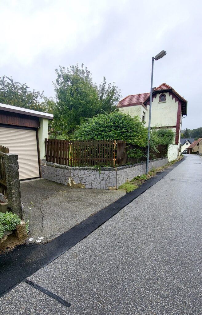 Vom Hof aus haben Sie rechts die erste Garage für Ihr Fahrzeug, die zweite wurde bereits erwähnt. Der Hof vor dem Haus ist mit Platten belegt und das Grundstück ist teilweise mit Mauersäulen eingefriedet. An Ihrer Garage schließt sich ein Nebengebäude an, das Sie als zukünftige zusätzliche Wohnfläche mit 12 m² genutzt werden kann.