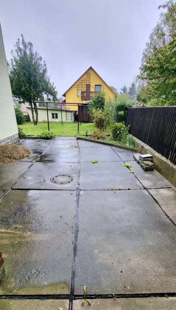 Auf dieser Seite Ihres Hauses erwartet Sie eine kleine Terrasse, die Ihnen einen Rückzugsort bietet und Ihnen vielleicht ein gemütliches Beisammensein, etwas abgeschirmt von den Nachbarn, ermöglicht.