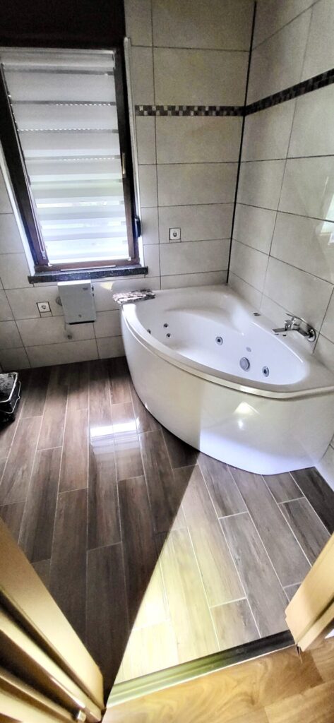 Ein weiteres Highlight für Sie ist hier das moderne Badezimmer, das Sie mit seiner Eckbadewanne mit Whirlpool-Funktion einlädt. Ein Handtuchtrockner ist für Sie ebenfalls vorhanden und trägt zum wohligen Raumklima bei. Hier wartet ein sehr modernes Bad auf Ihre Wohlfühlstunden zu Hause.