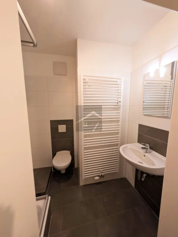 - Ein modernes Bad mit Dusche, WC und Waschmaschinenanschluss